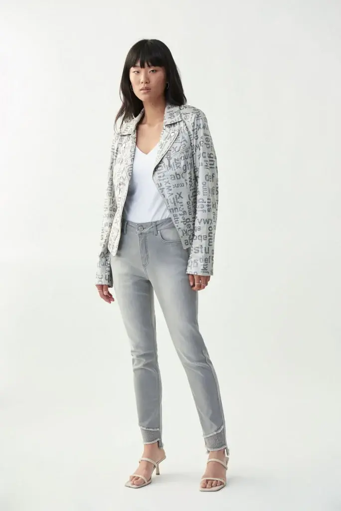 Joseph Ribkoff Alphabet Print Moto Jacket